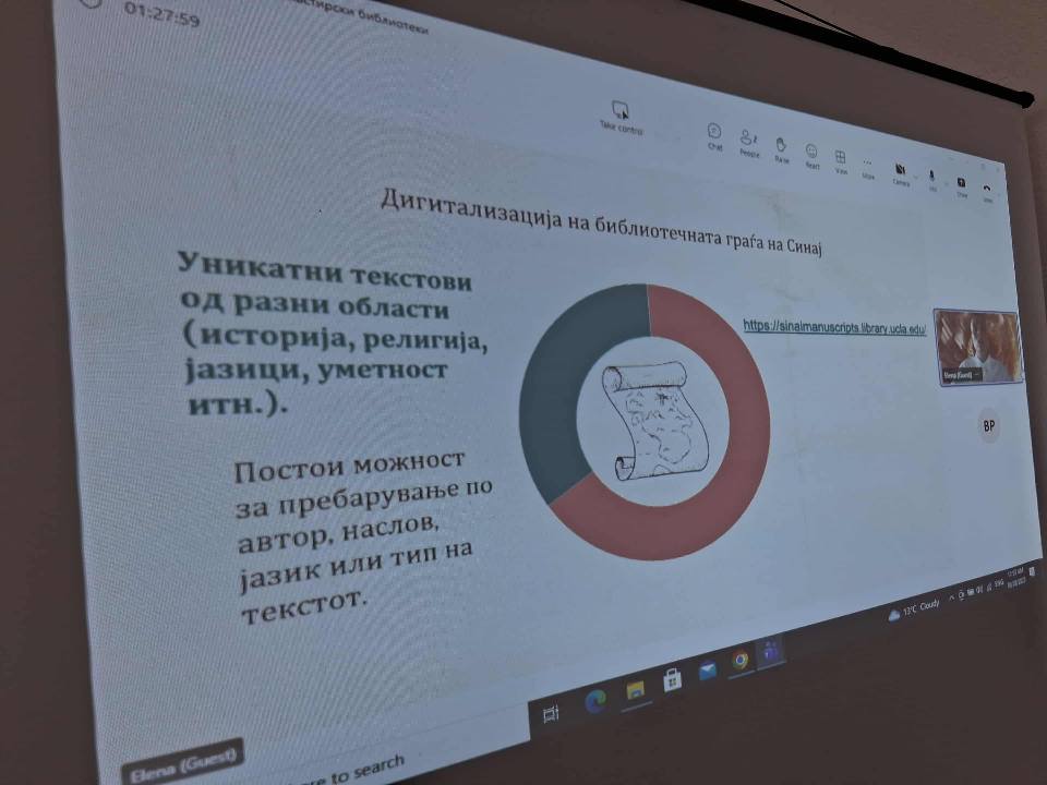 Онлајн предавањето го одржа докторанд Елена Станкоска, виш библиотекар во НУ„Григор Прличев“- Охрид.