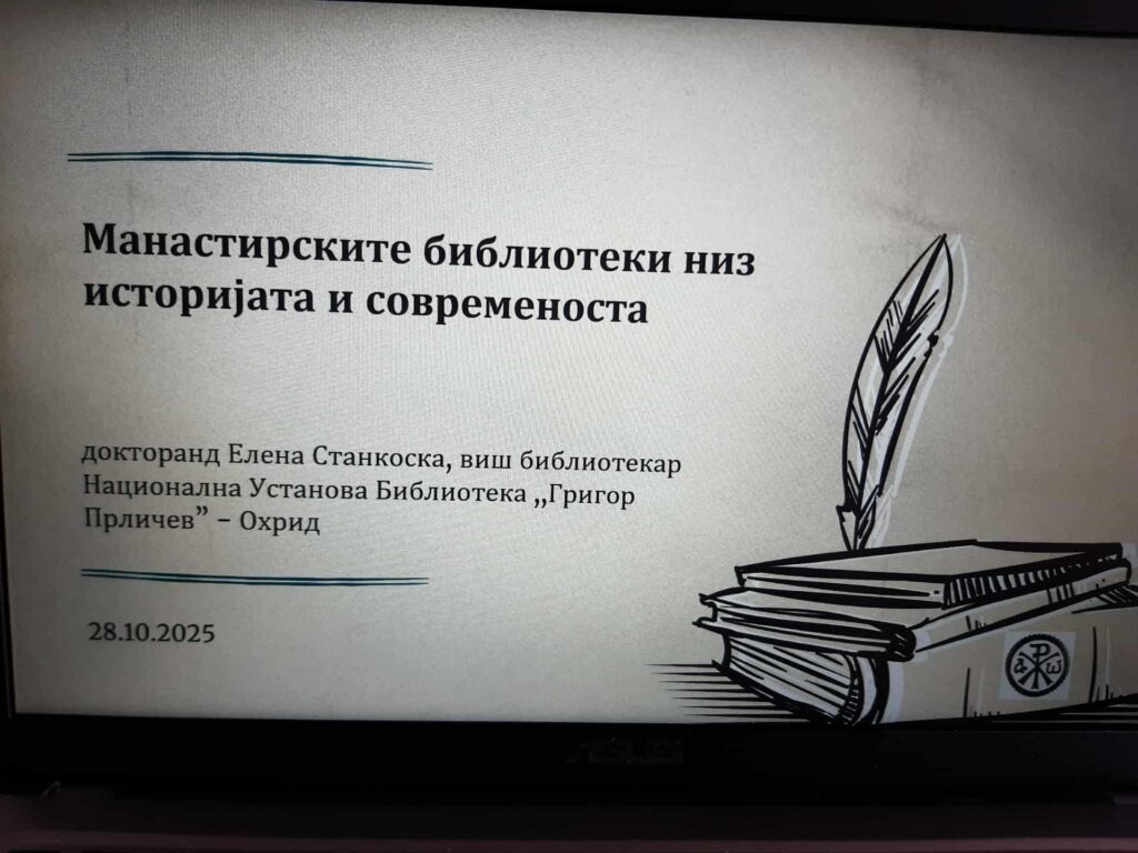 Во читалната на ЈЛБ„Илинден“-Делчево, се одржа онлајн предавање на тема„Манастирските библиотеки“, во соработка со НУ „Григор Прличев“-Охрид.