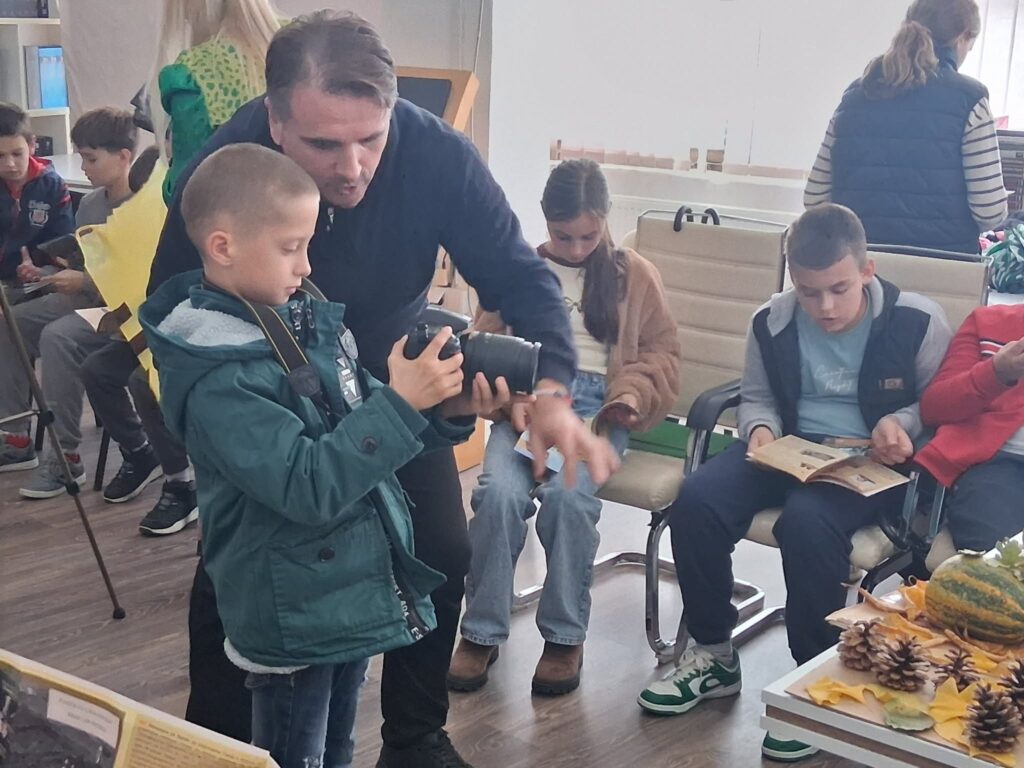 Кирчо Атанасовски од НУЦК, на дечињата им го објасни поимот новинарска фотографија, техничките карактеристики за еден фотоапарат и неговите функционалности.На крај имавме и показна вежба со секое дете, за фотографирање на сцени со мотиви кои ја отсликуваат есента.
