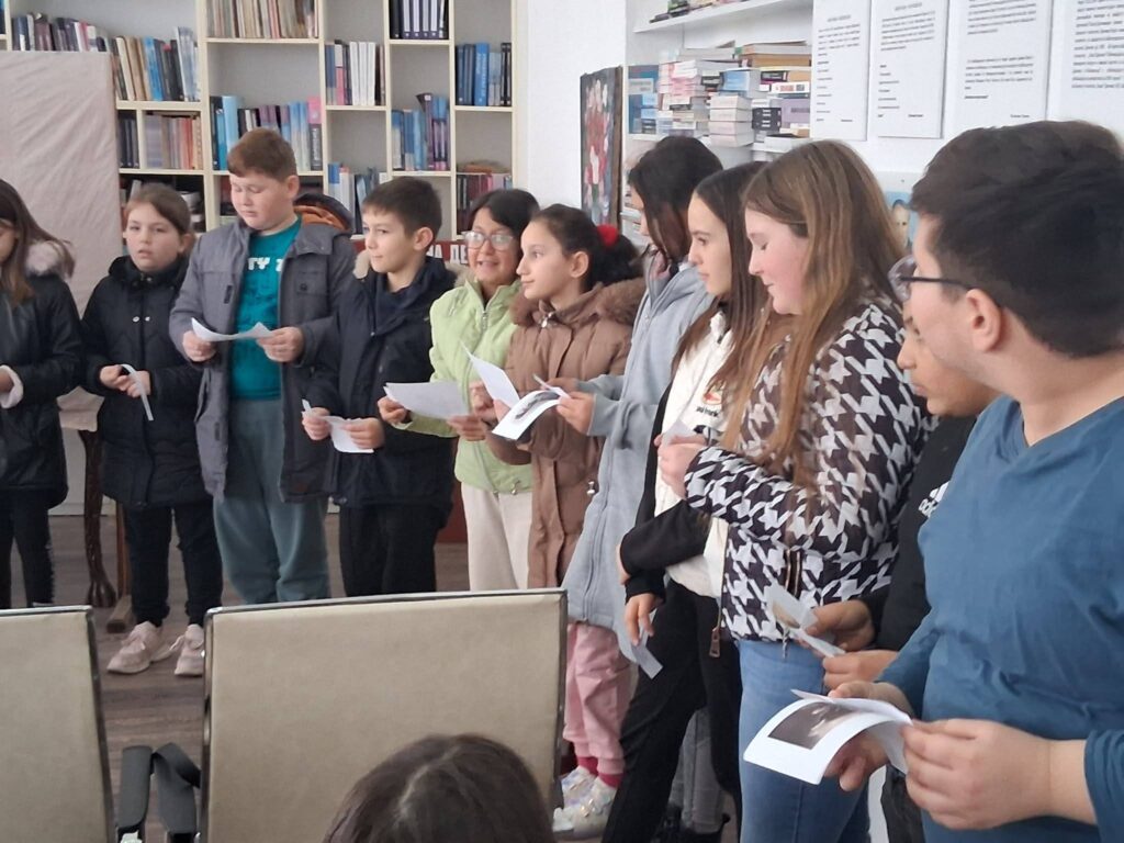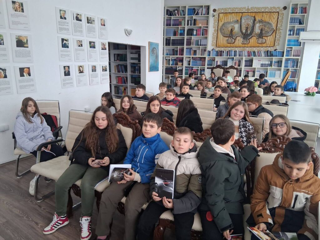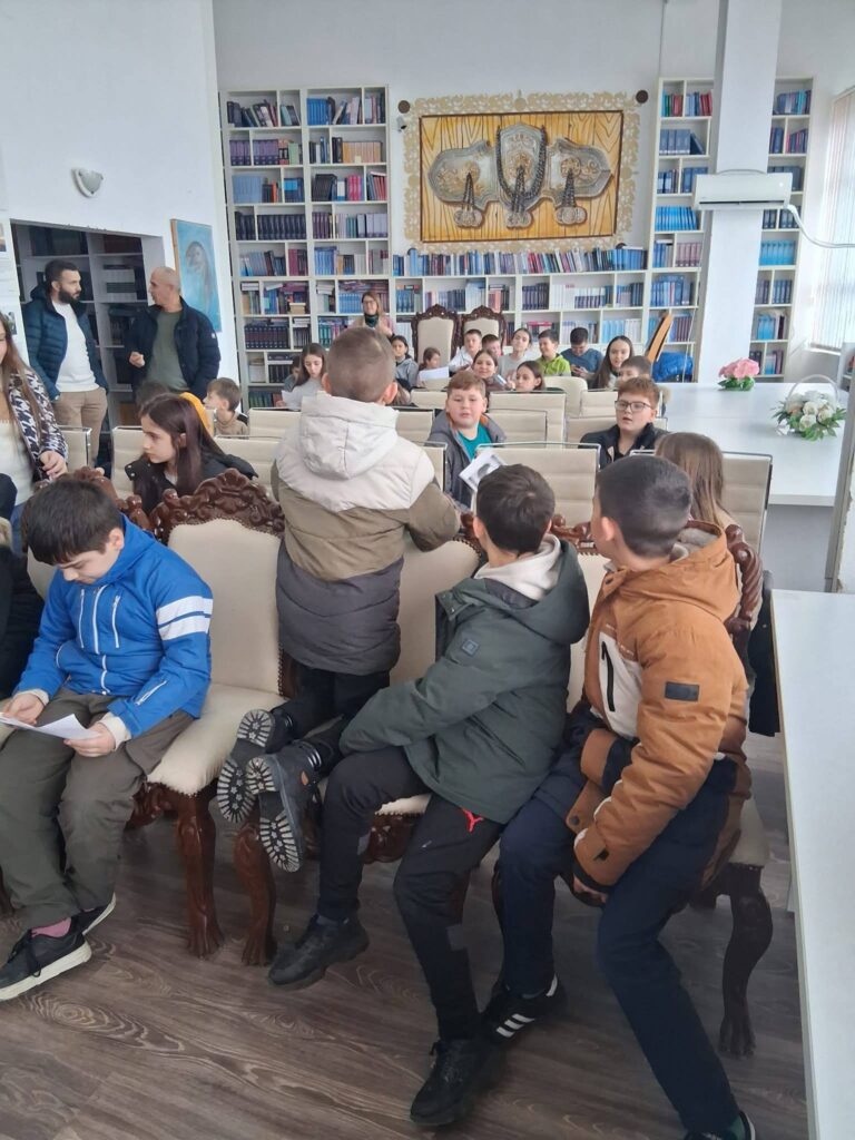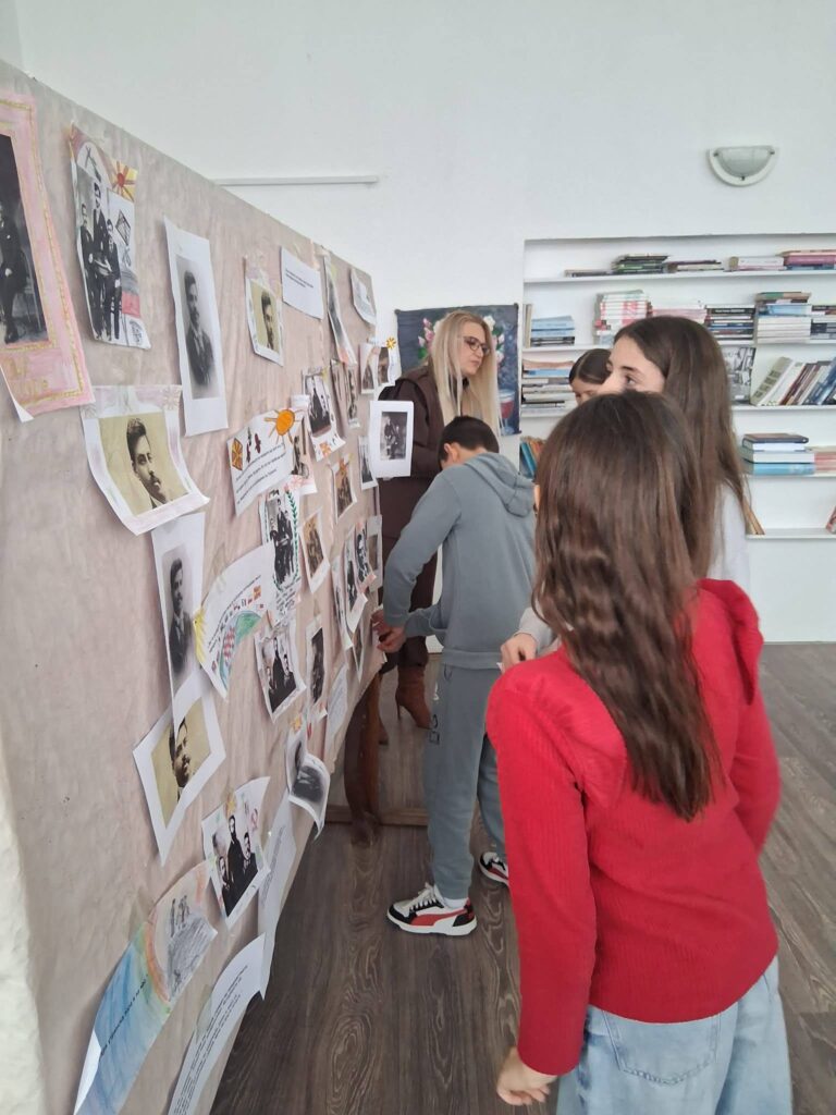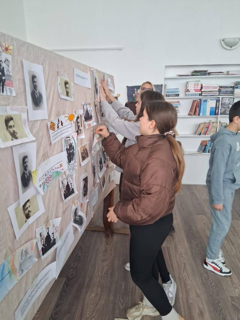 Во читалната на библиотеката, читавме дел од Гоцевата биографија, неговите познати изреки, и слики, и истите ги залепивме на табла.